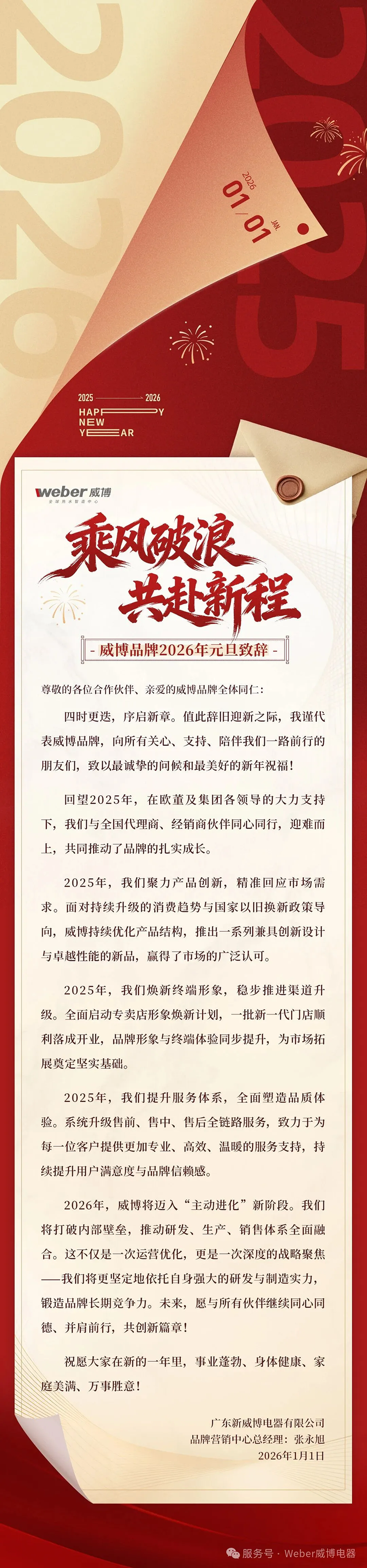 乘风破浪 共赴新程——威博品牌2026年元旦致辞